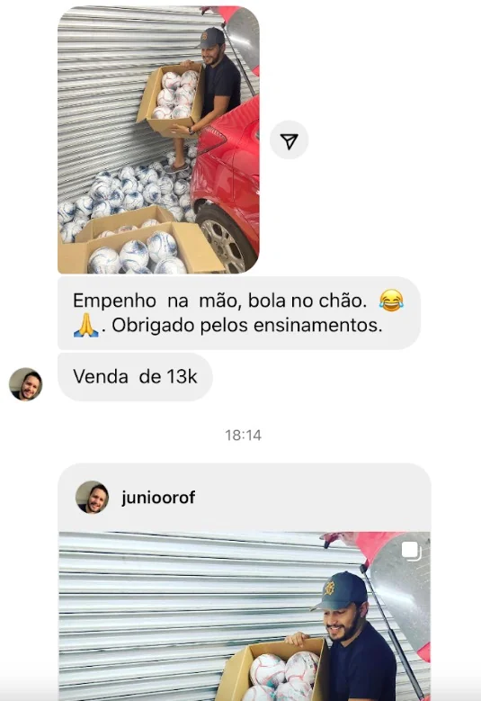 Outro exemplo é o Edson, que realizou a sua primeira venda 23 dias após se tornar aluno, como você pode ver na imagem abaixo: