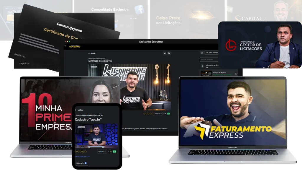As aulas mostram todo o passo a passo que você deve seguir, desde o cadastro nos Portais de Licitações do Governo, até a participação de uma licitação na prática.